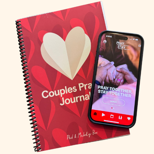 The Pray2Stay App and the Companion Notebook are designed to work hand in hand, giving you the complete, enriched experience of walking through the Couples Prayer Journal together.